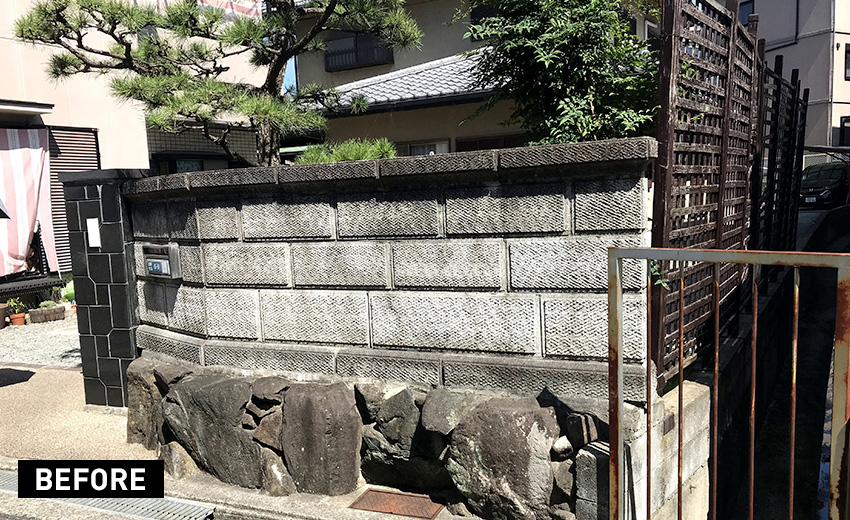 地震によるブロック倒壊の不安を解消するため、既存のブロック塀をすべて撤去し、安全性の高いフェンスへリフォームしました。新設した基礎は強度を高めた構造とし、倒壊リスクを大幅に軽減。フェンスには建物に馴染みやすいプラチナステン色を採用し、明るく軽やかな印象に仕上げました。防災性とデザイン性を両立したリフォームで、安心して暮らせる住まい環境を実現しています。