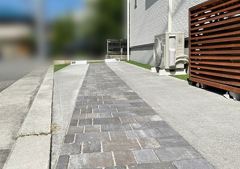 インターロッキングと人工芝で快適に変身!角地の駐車場リフォーム